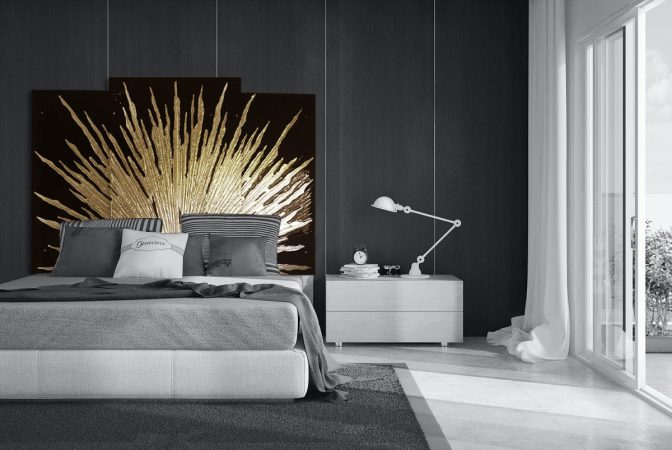 Game of thrones King size bedhead Price: $9800 SALE PRICE: $3000 2600 x 1650mm King size bedhead 3 pieces Slumped Glass with Gold Leaf