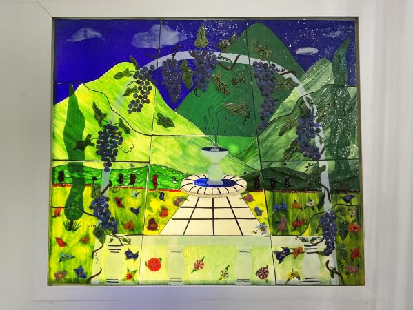 Tuscan Scene Price: $11,200 SALE PRICE: $0 1650 x Handmade, hand cut bullseye glass. Made in the year 2000. Needs a frame made. Made to be back lit. I would love for this piece to go to a winery, or make an offer.